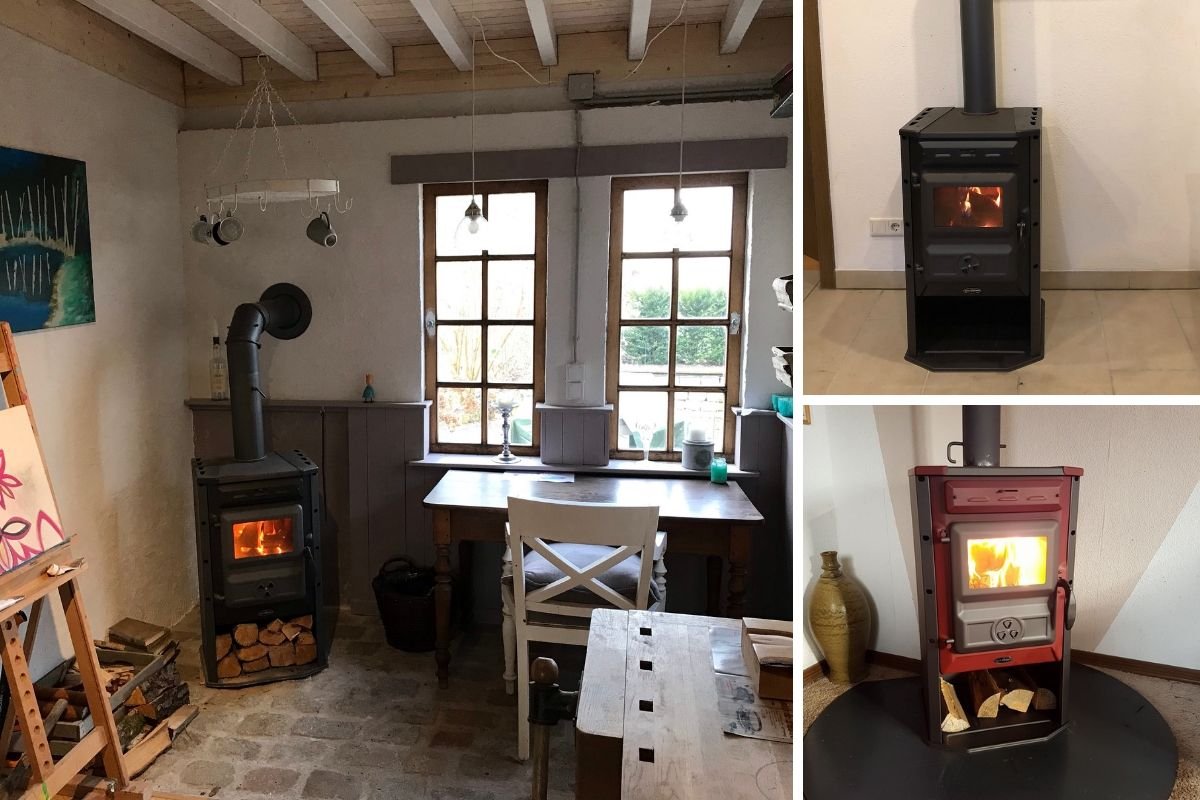 - Der Ofen ist klassisch in den Farben grau und schwarz erhältlich. Wer es lieber farbenfroh mag, kann mit der roten oder blauen Variante einen schönen Farbtupfer setzen.