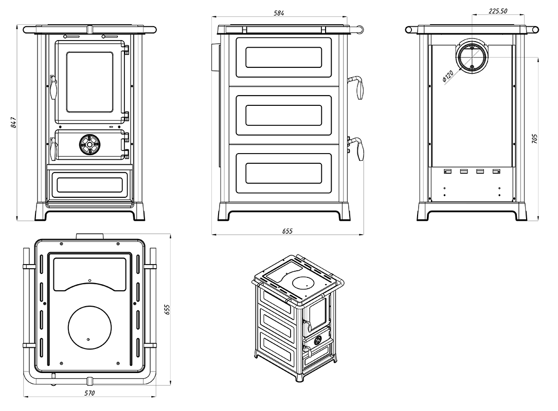 - Tür und Glasscheibe sind sorgfältig gedichtet. Der Ofen darf auch an mehrfachbelegten Schornsteinen angeschlossen werden.