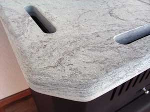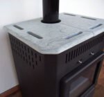 Die Specksteinkacheln speichern Wärme und sorgen für ein besonders edles Erscheinungsbild.