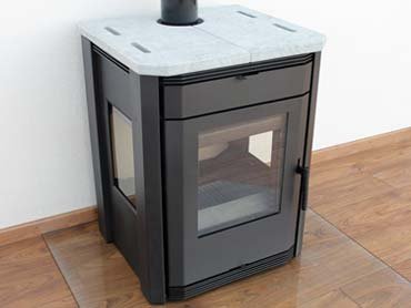 • Die Abdeckplatte aus Speckstein speichert Wärme und sorgt für ein besonders edles Erscheinungsbild.