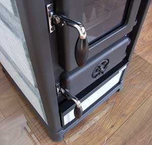 • Der großzügige Brennraum und weitre relevante Bauteile wie die Feuerraum- und Aschekastentür sowie die Abdeckplatte sind aus Grauguss gefertigt und damit sehr wartungsarm und langlebig. Schamott- oder Vermiculite-Steine werden gar nicht erst benötigt.