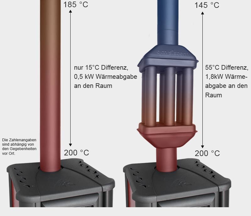 - Die Oberfläche ist 4-mal größer als bei einem gleich langen Ofenrohr