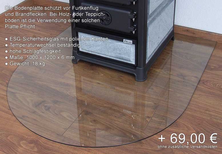 Die Bodenplatte schützt vor Funkenflug und Brandflecken. Bei Holz- oder Teppichböden ist die Verwendung einer solchen Platte vorgeschrieben.